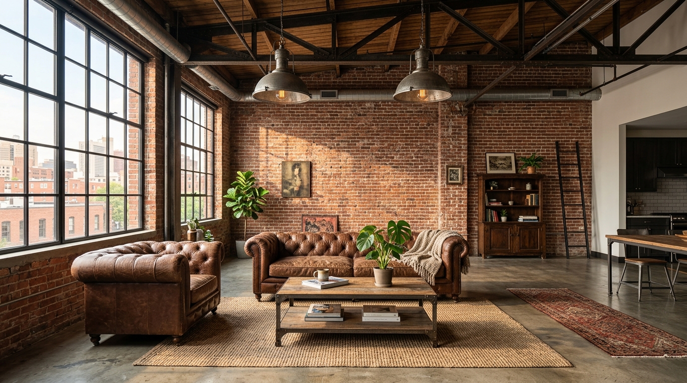 Сочетание грубого и комфортного. Контраст — сердце лофта. Голая кирпичная стена и мягкий бархатный диван. Ржавая труба и хрустальная люстра. Бетонный пол и пушистый ковёр. Без этого противопоставления лофт превращается либо в стройку, либо в обычную квартиру.