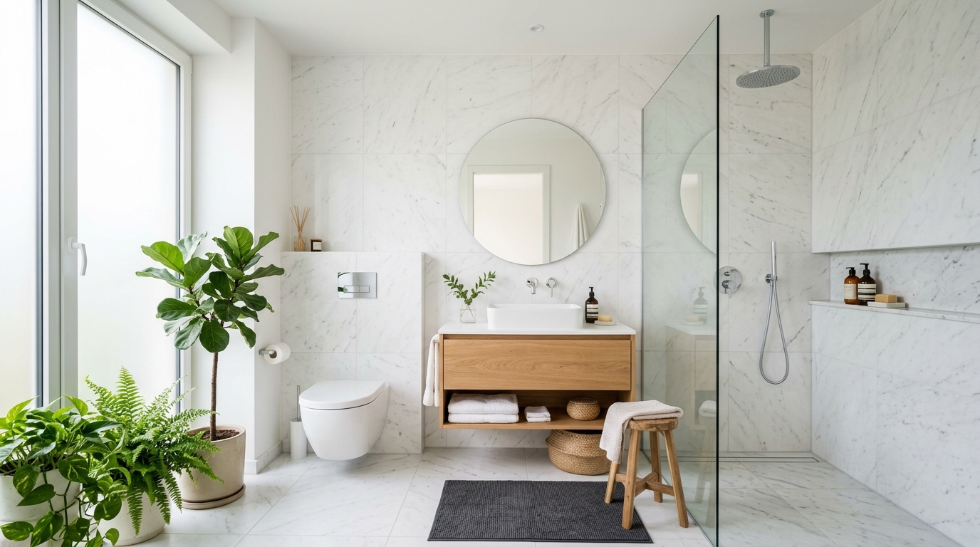 Выбор стиля определяет палитру, материалы и характер интерьера. Вот четыре направления, которые лучше всего работают в совмещённых санузлах.