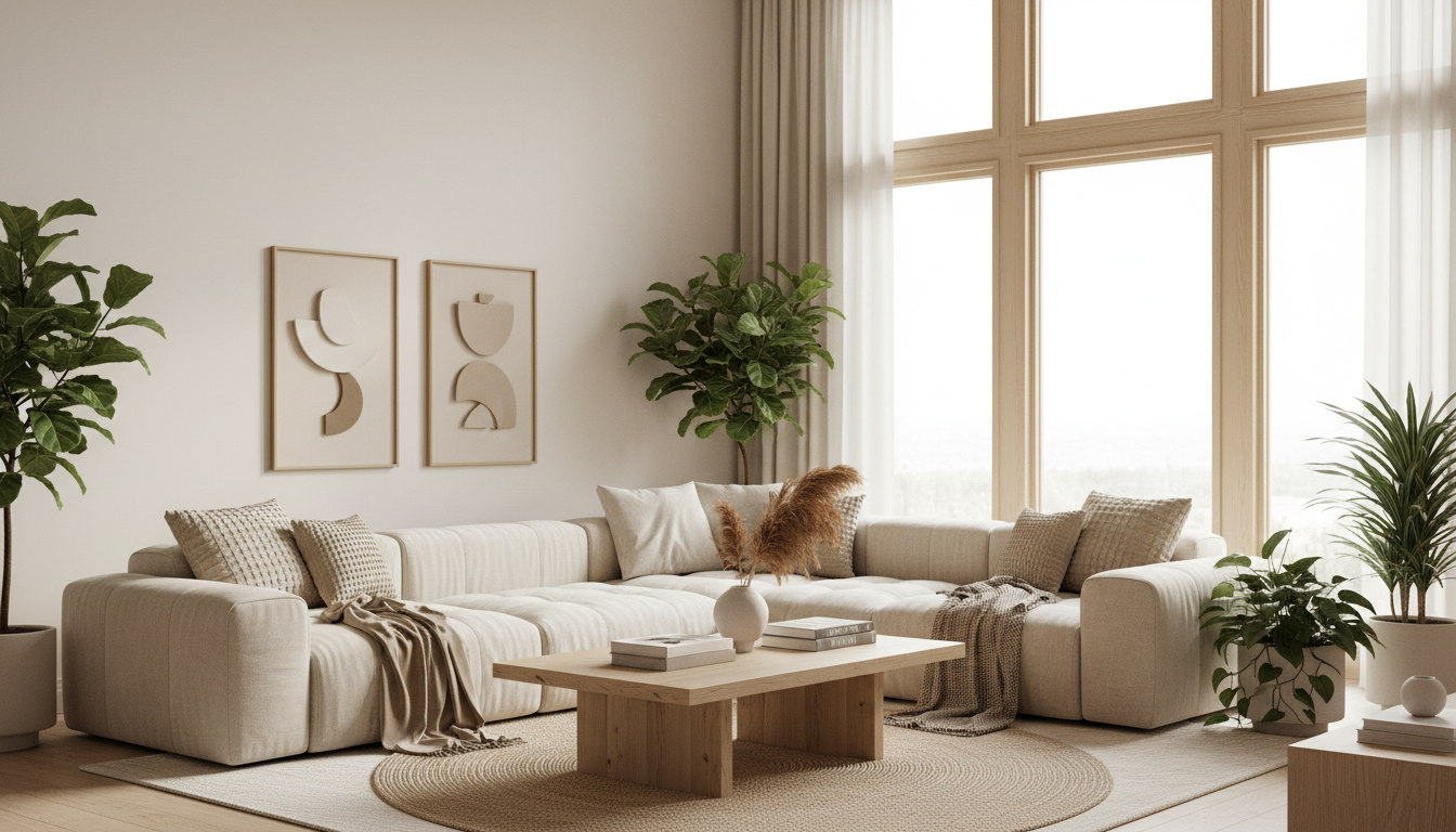 Самая простая и надёжная палитра: от сливочного на стенах через песочный на мебели до шоколадного в акцентах. Добавьте натуральное дерево — и интерьер станет «живым».