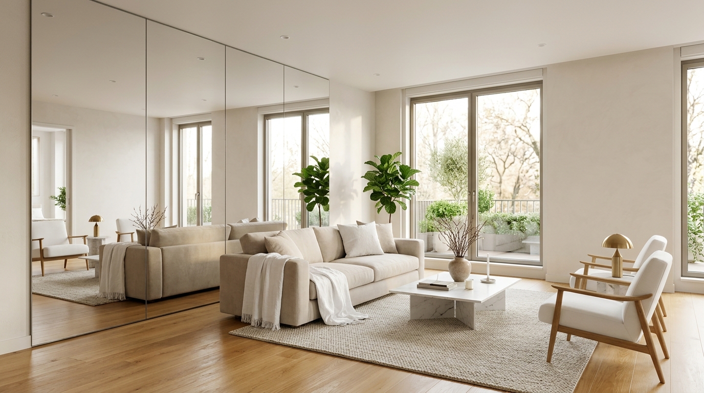 Важно понимать: зеркало не добавляет реальных квадратных метров. Но оно меняет восприятие пространства — и часто этого достаточно, чтобы маленькая комната перестала «давить».