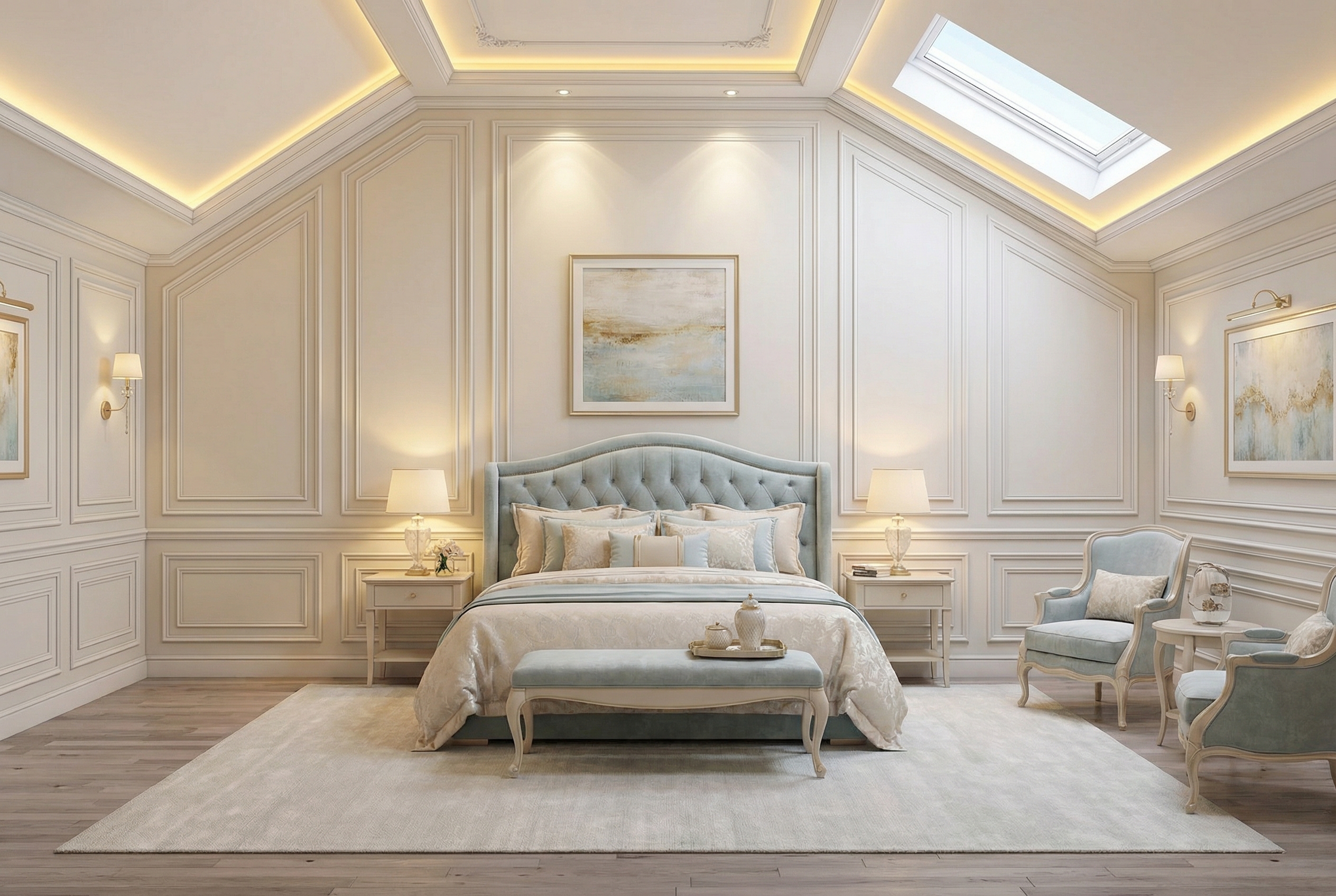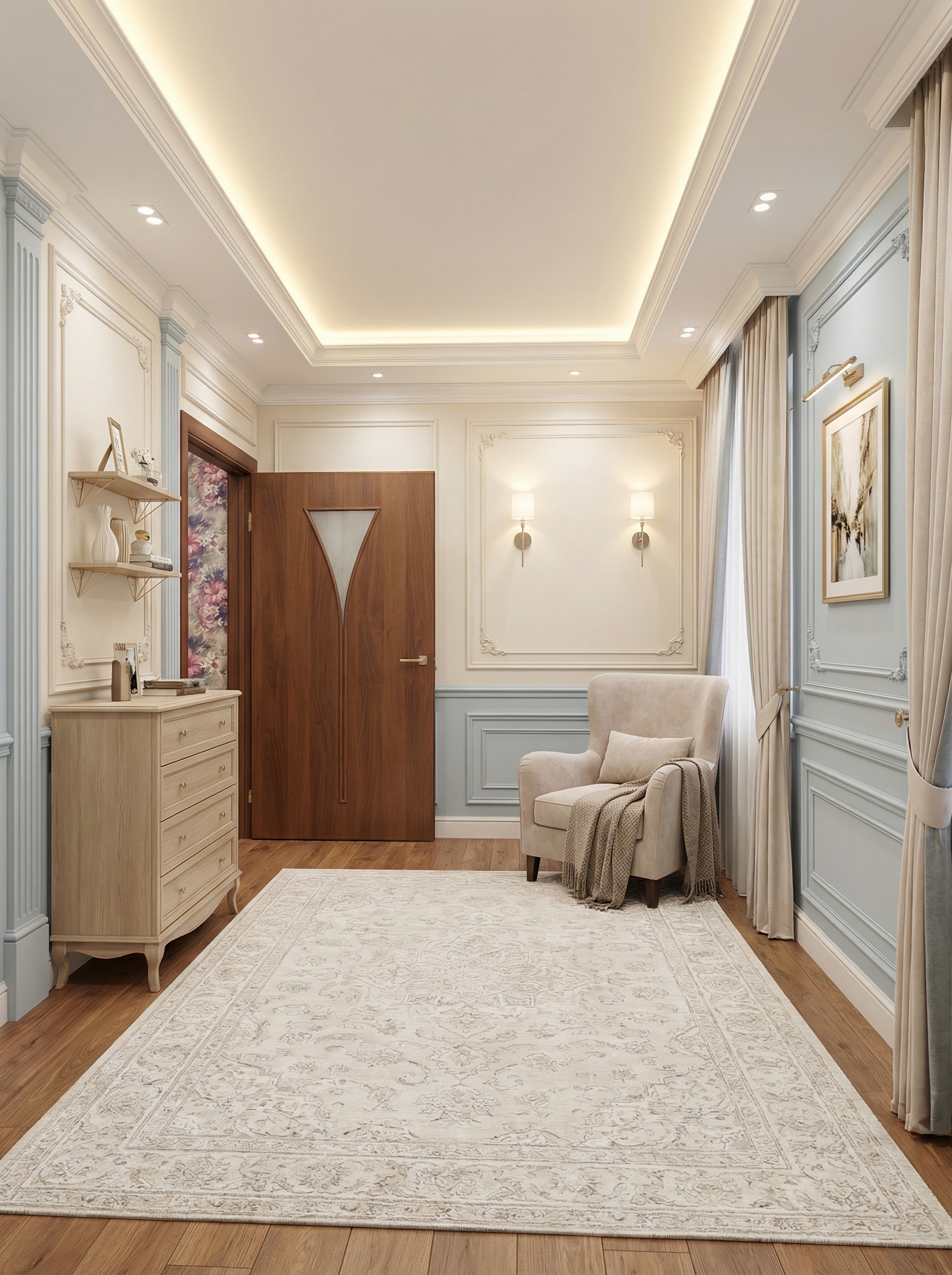 Утончённый стиль с симметрией, лепниной и благородными материалами. Классический интерьер сочетает роскошь и сдержанность, создавая атмосферу вневременной элегантности.