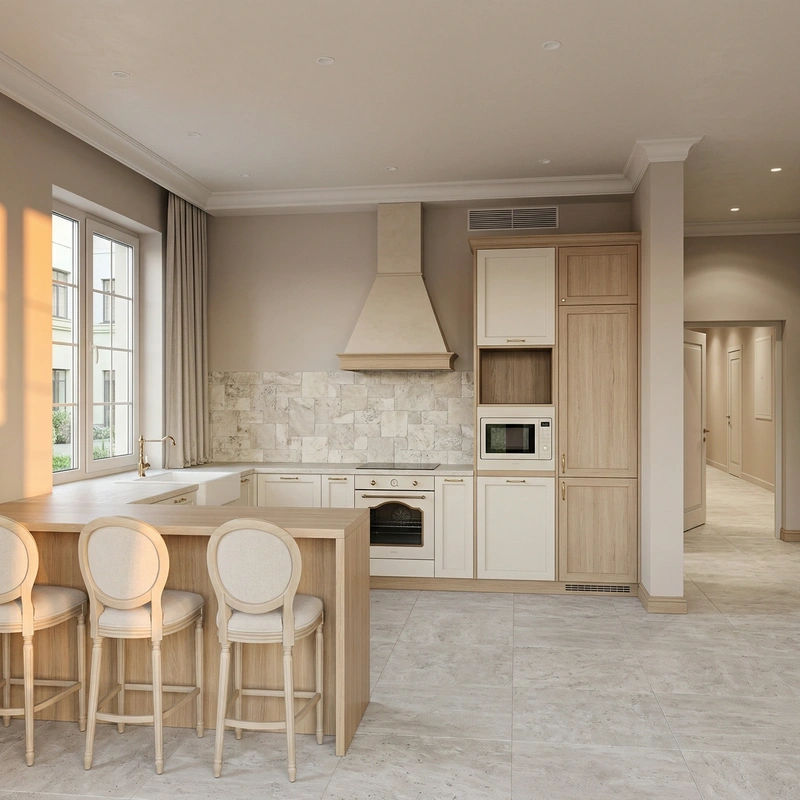 Дизайн кухни в стиле Классика — фото интерьера от нейросети RoomGPT