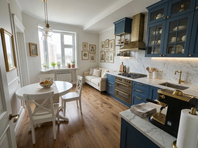 Дизайн кухни в стиле Классика — фото интерьера от нейросети RoomGPT