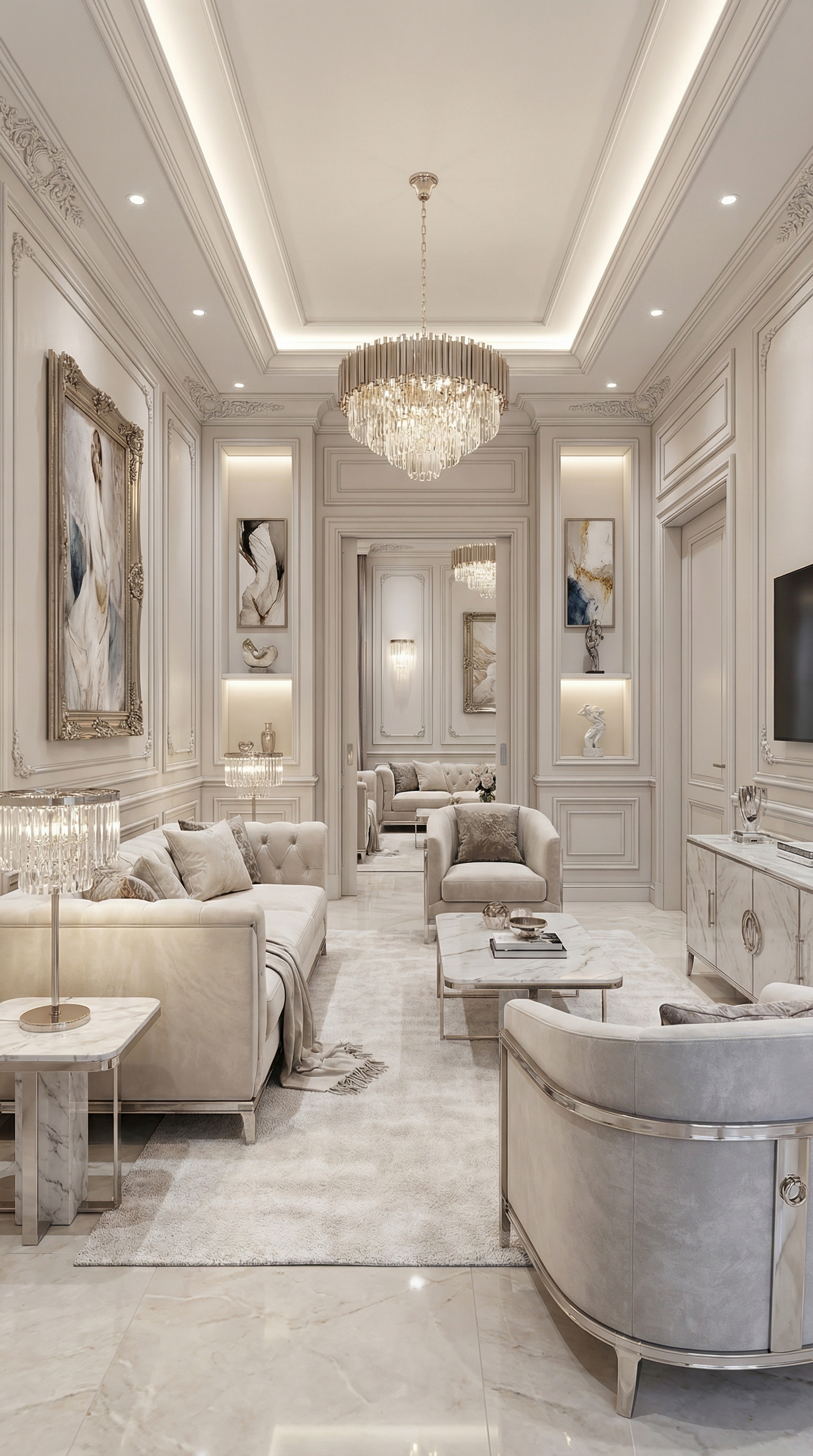 Утончённый стиль с симметрией, лепниной и благородными материалами. Классический интерьер сочетает роскошь и сдержанность, создавая атмосферу вневременной элегантности.