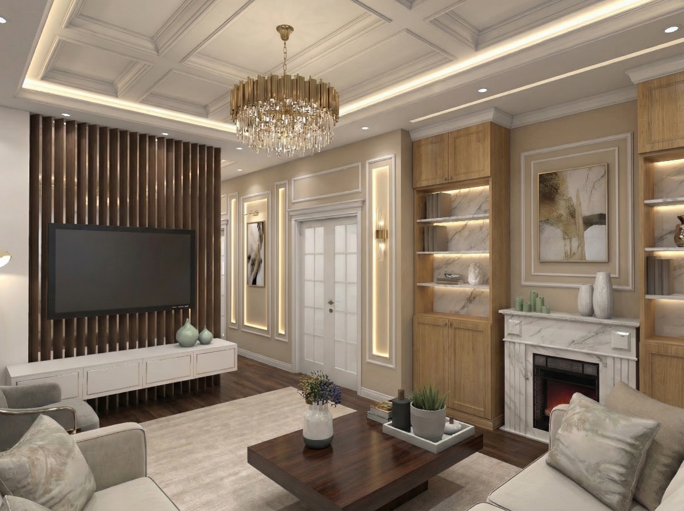 Утончённый стиль с симметрией, лепниной и благородными материалами. Классический интерьер сочетает роскошь и сдержанность, создавая атмосферу вневременной элегантности.