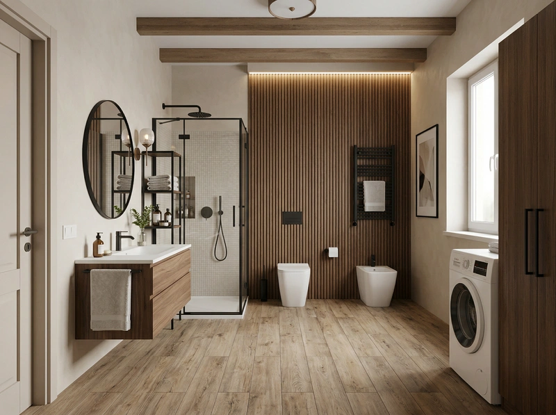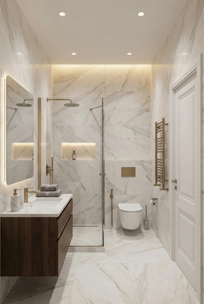 Дизайн ванной в стиле Контемпорари — фото интерьера от нейросети RoomGPT