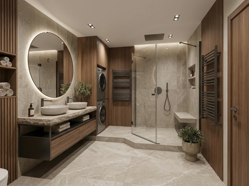Дизайн ванной в стиле Контемпорари — фото интерьера от нейросети RoomGPT