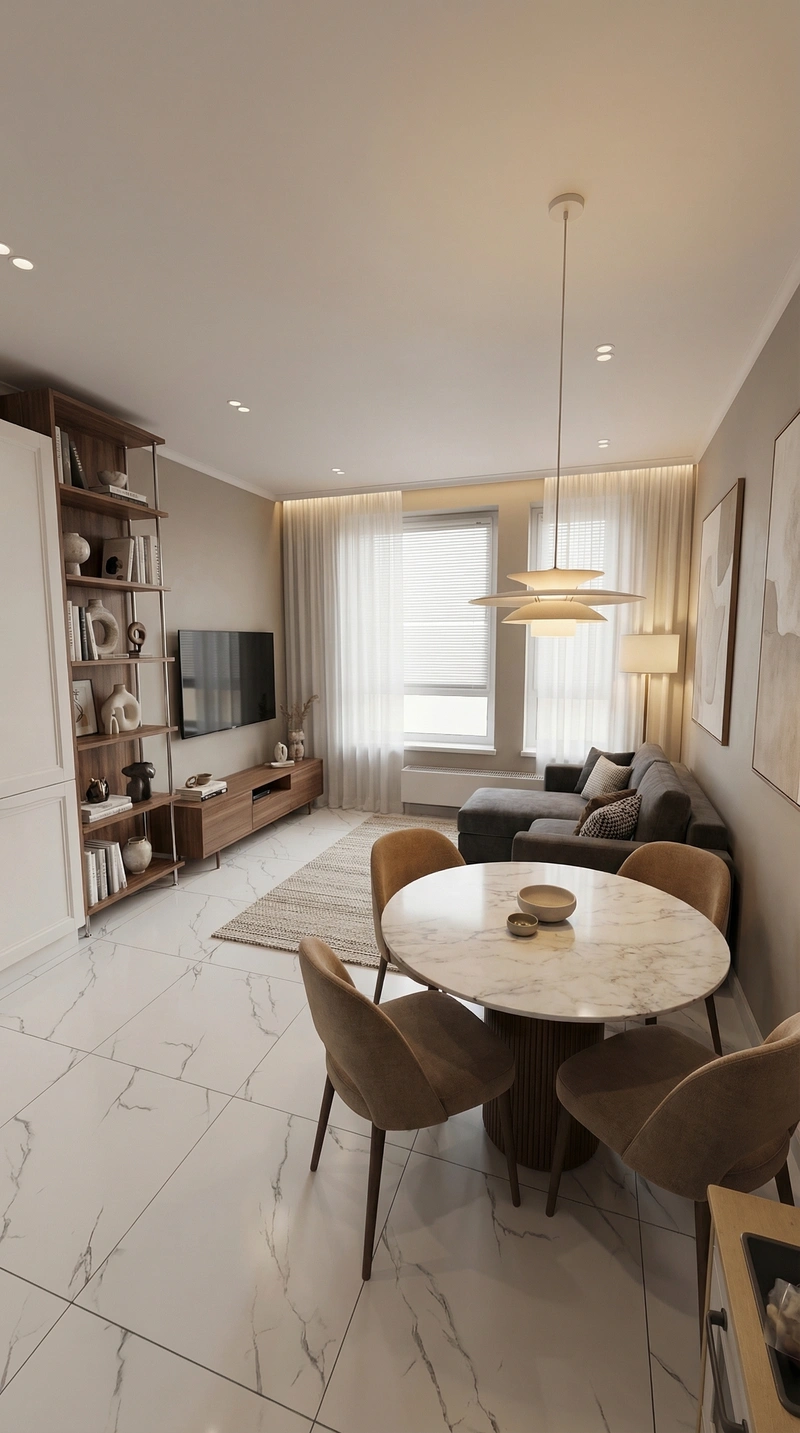 Современный стиль, сочетающий комфорт и актуальные тренды. Контемпорари — это мягкие формы, нейтральная палитра и акцент на текстурах и качественных материалах.