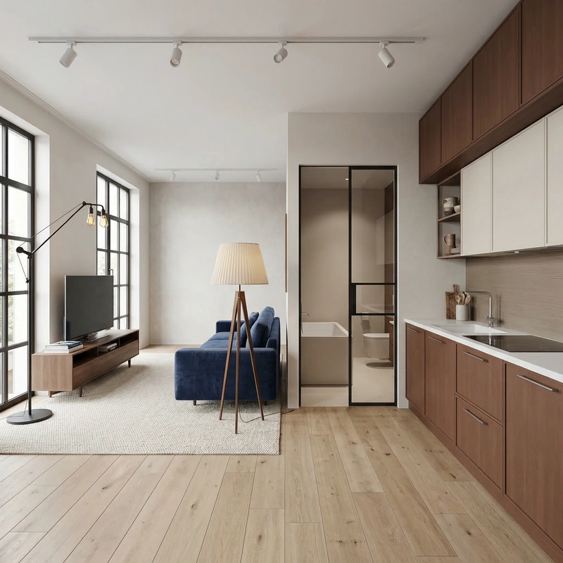Современный стиль, сочетающий комфорт и актуальные тренды. Контемпорари — это мягкие формы, нейтральная палитра и акцент на текстурах и качественных материалах.