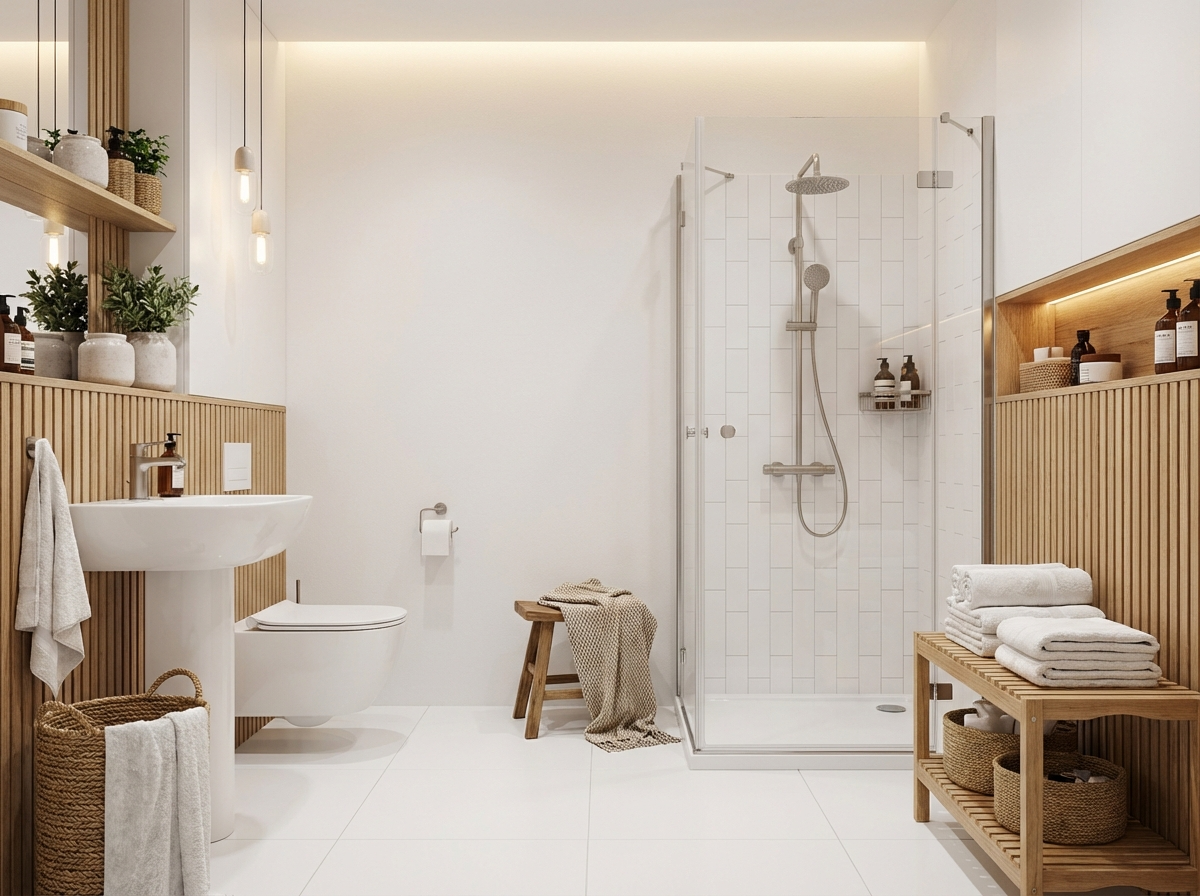 В этой подборке 86 примеров оформления ванной в стиле Хюгге, созданных нейросетью RoomGPT. Каждое изображение сгенерировано на основе реального фото помещения.