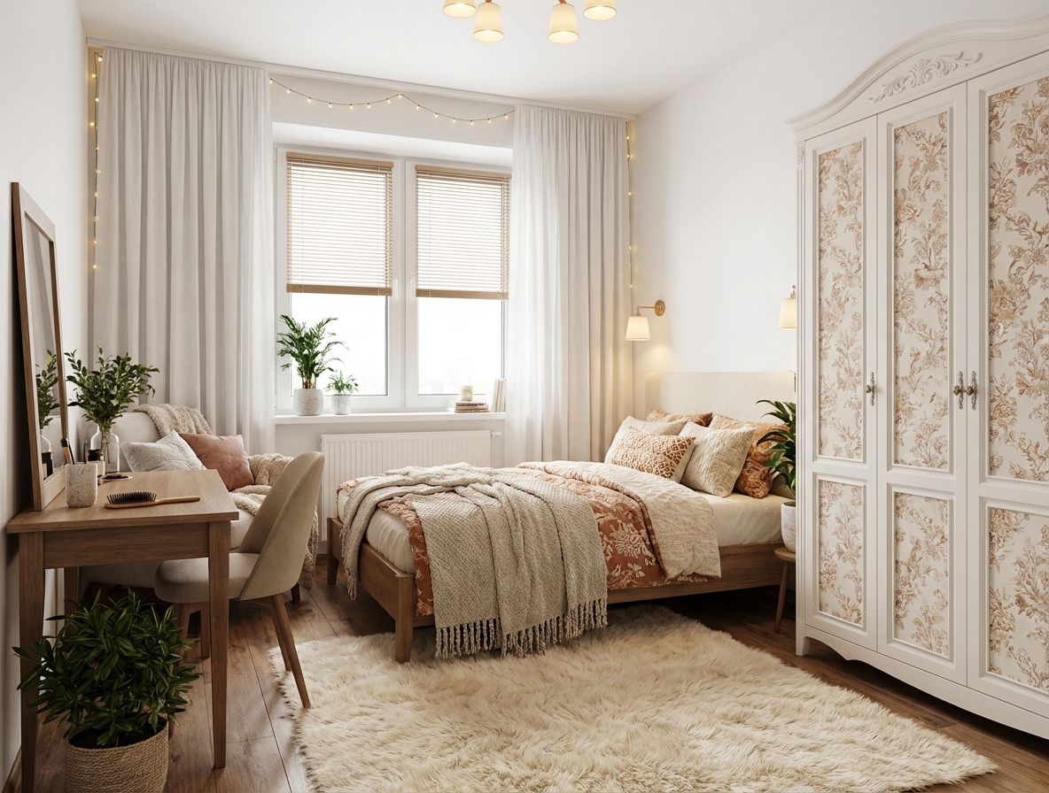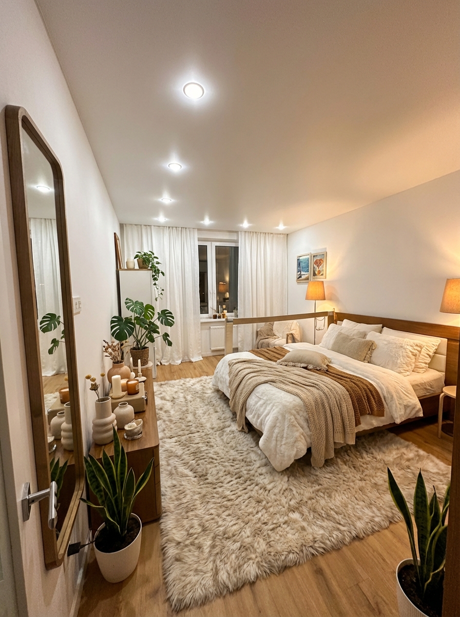 Дизайн спальни в стиле Хюгге — фото интерьера от нейросети RoomGPT