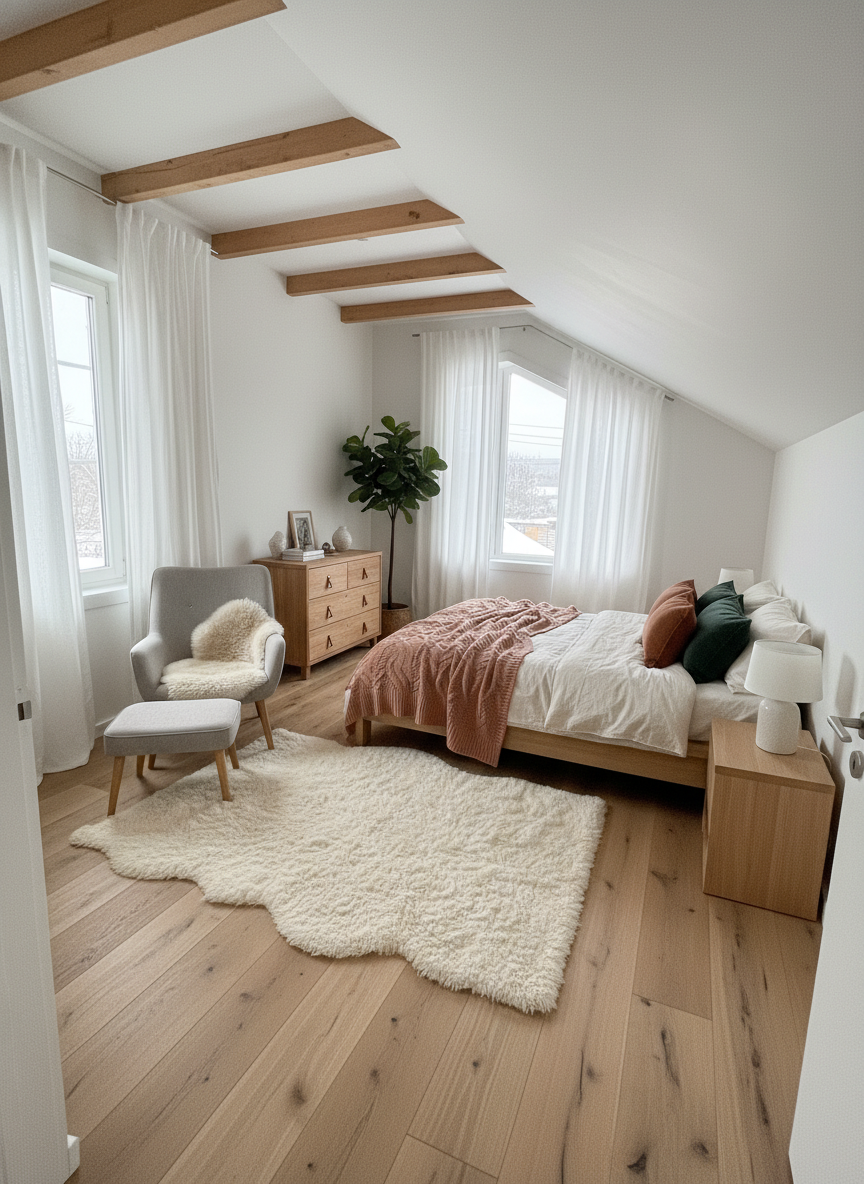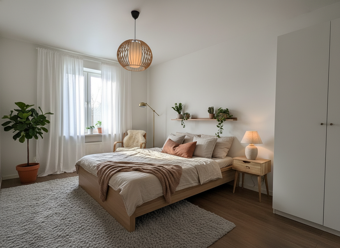 Уютный скандинавский стиль с акцентом на комфорт и тёплую атмосферу. Натуральные материалы, мягкие текстуры и приглушённые тона создают ощущение домашнего тепла и спокойствия.