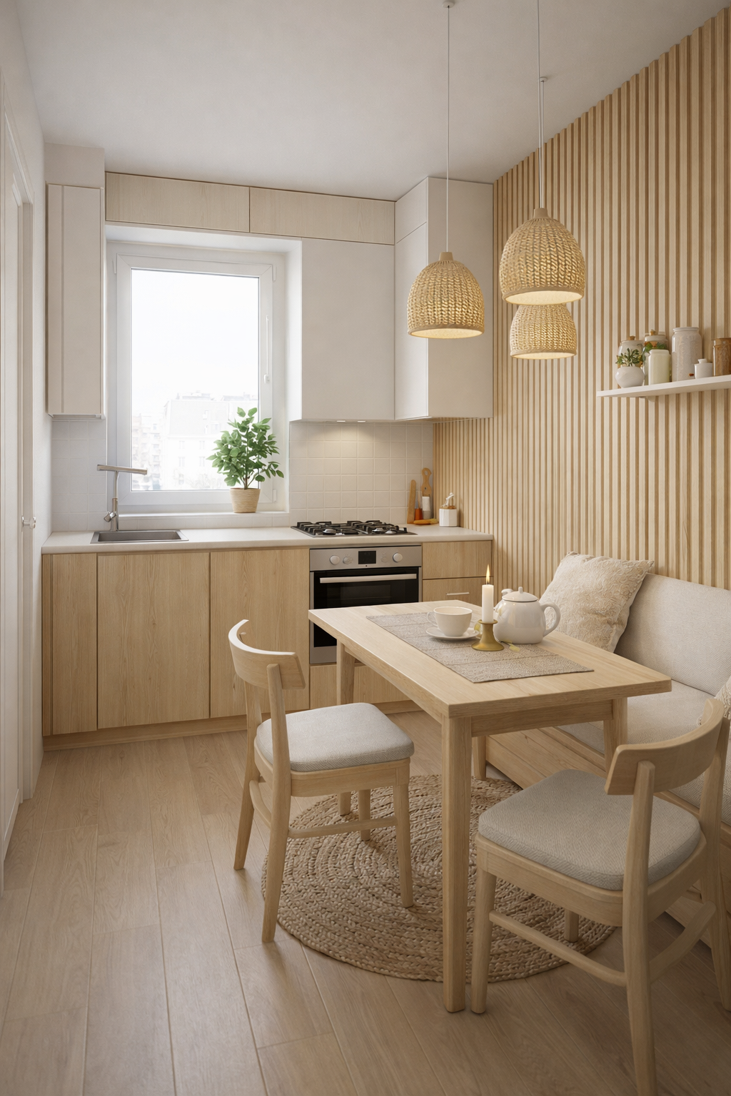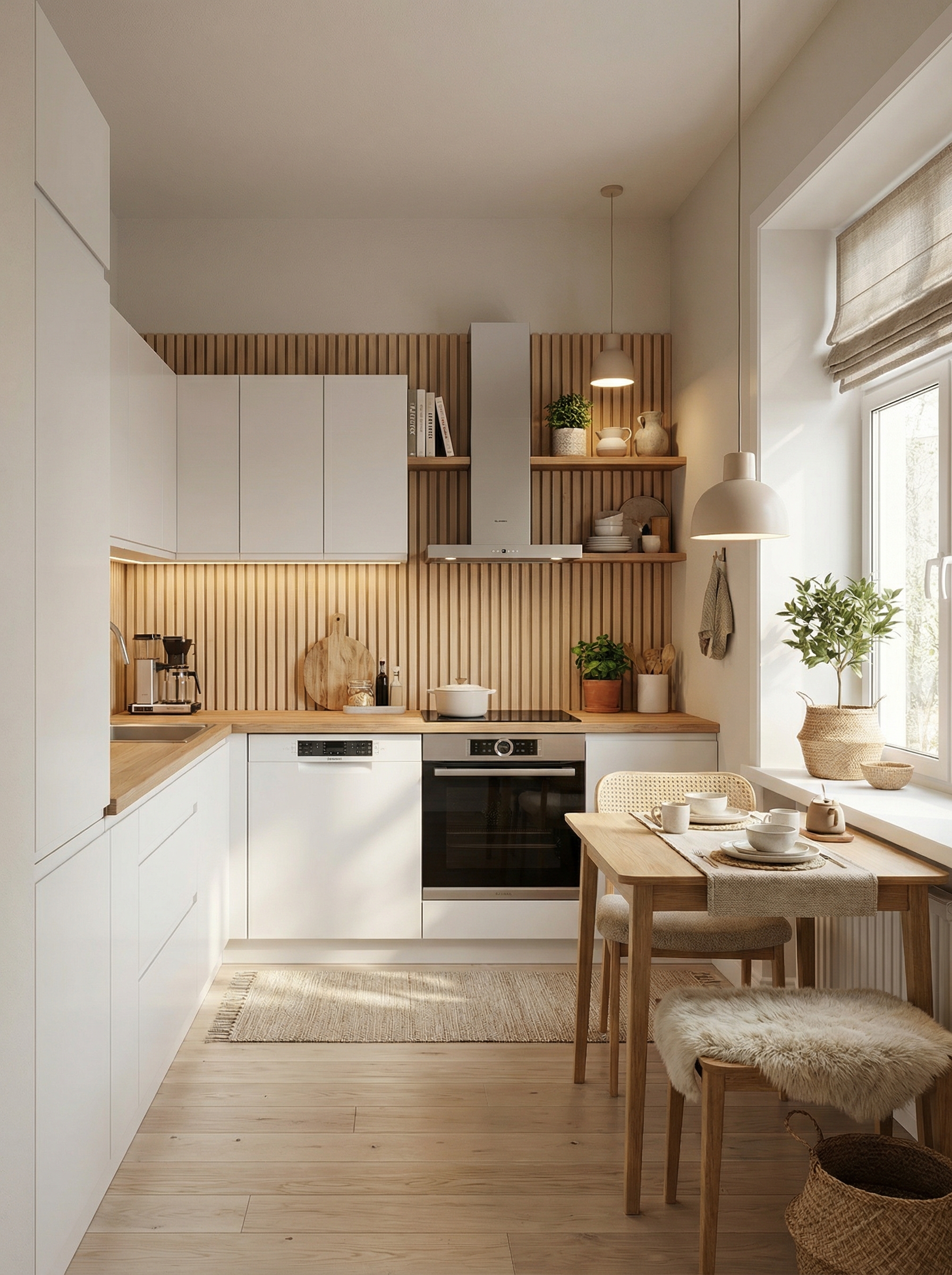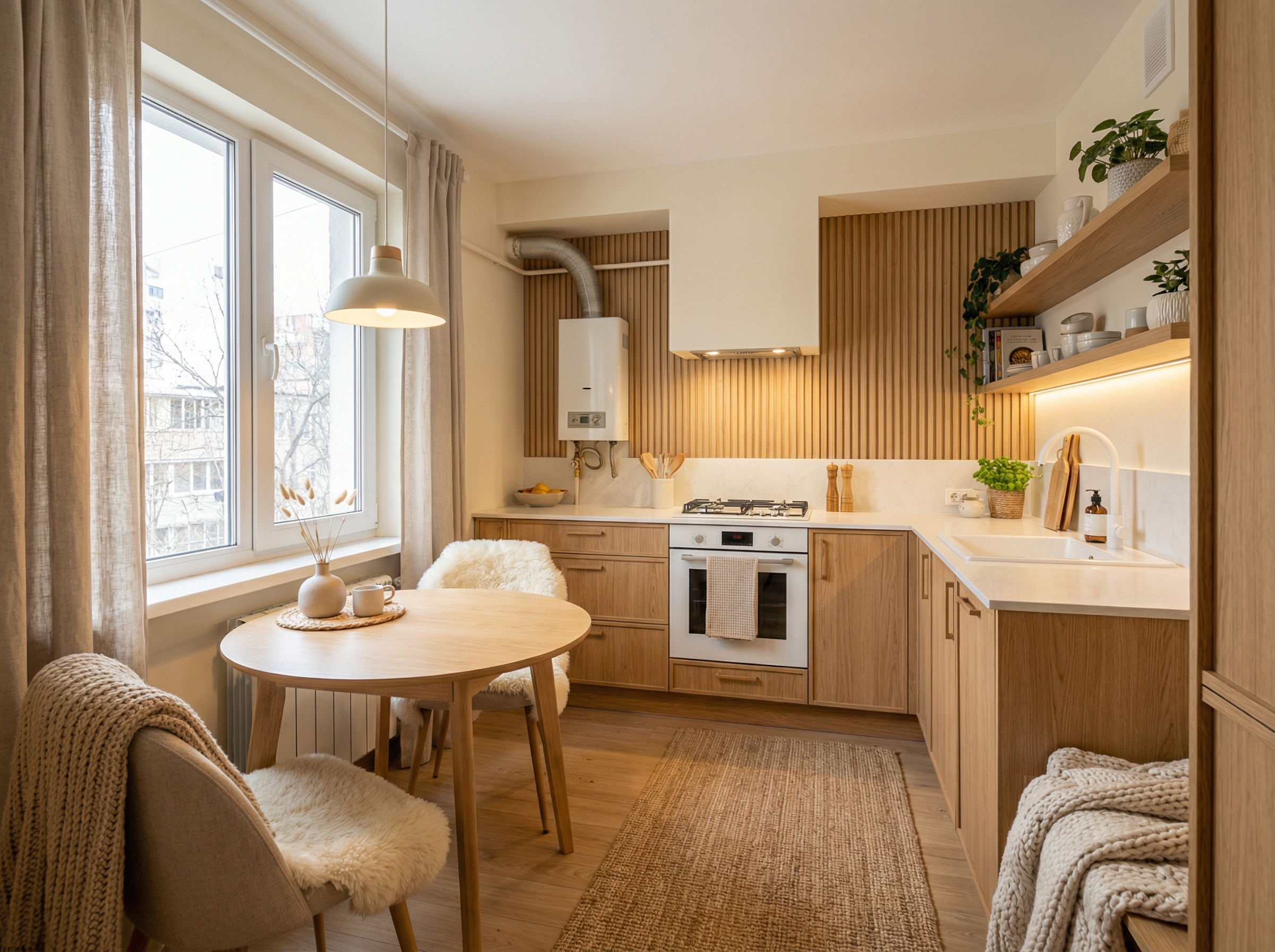 Уютный скандинавский стиль с акцентом на комфорт и тёплую атмосферу. Натуральные материалы, мягкие текстуры и приглушённые тона создают ощущение домашнего тепла и спокойствия.