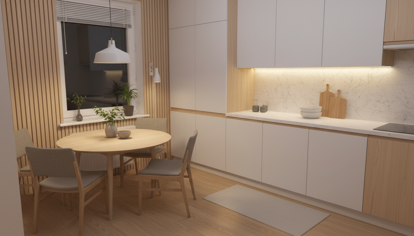 Уютный скандинавский стиль с акцентом на комфорт и тёплую атмосферу. Натуральные материалы, мягкие текстуры и приглушённые тона создают ощущение домашнего тепла и спокойствия.