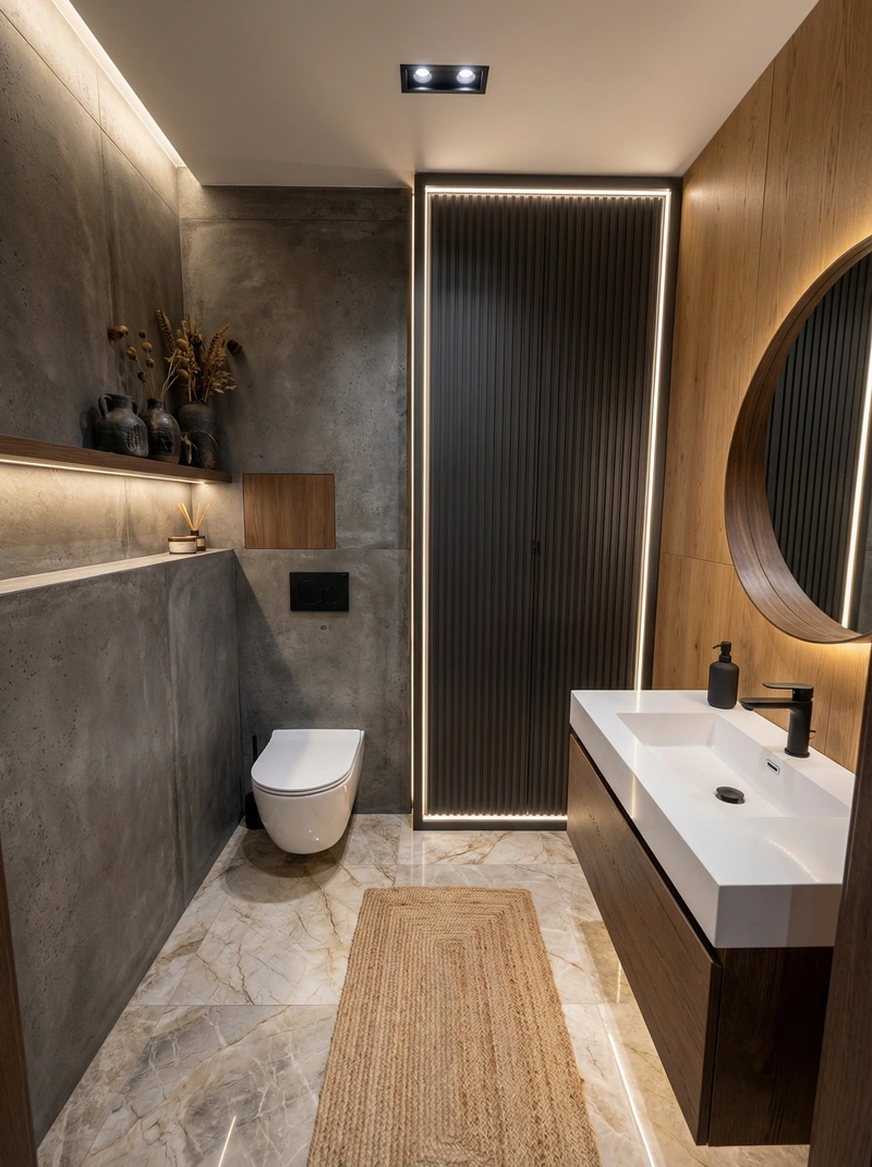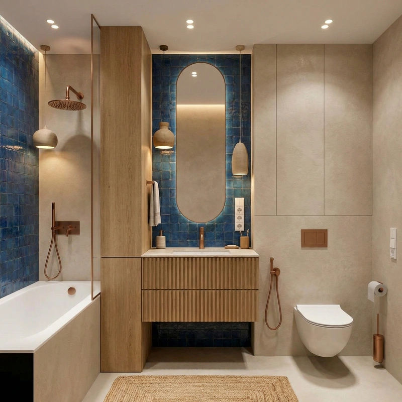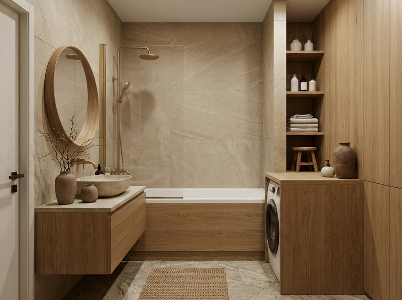 Создать дизайн ванной в стиле Japandi