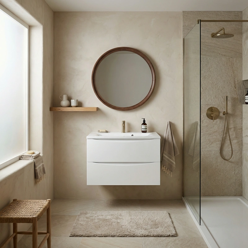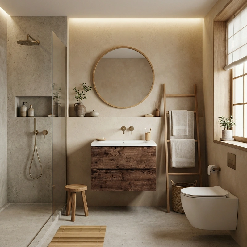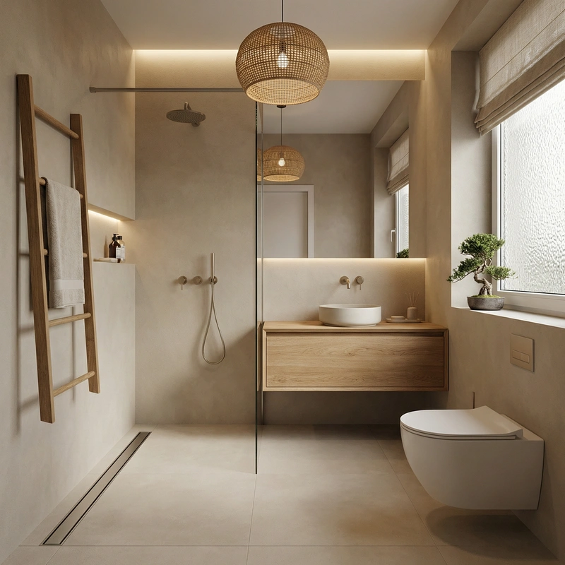 Дизайн ванной в стиле Japandi — фото интерьера от нейросети RoomGPT