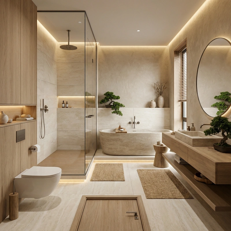 Гармоничное сочетание японской эстетики и скандинавской функциональности. Натуральное дерево, нейтральные тона и осознанный подход к каждому элементу интерьера.