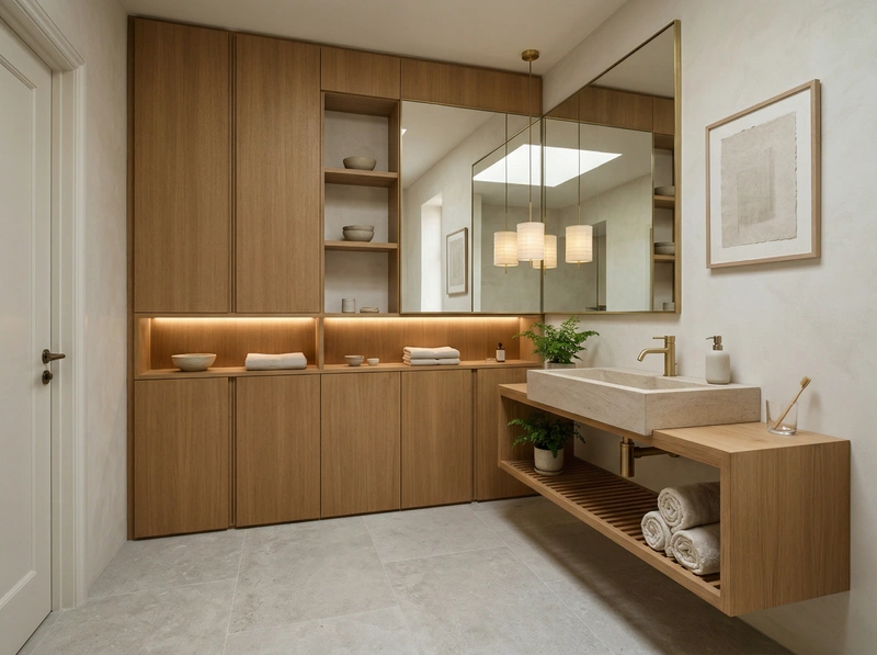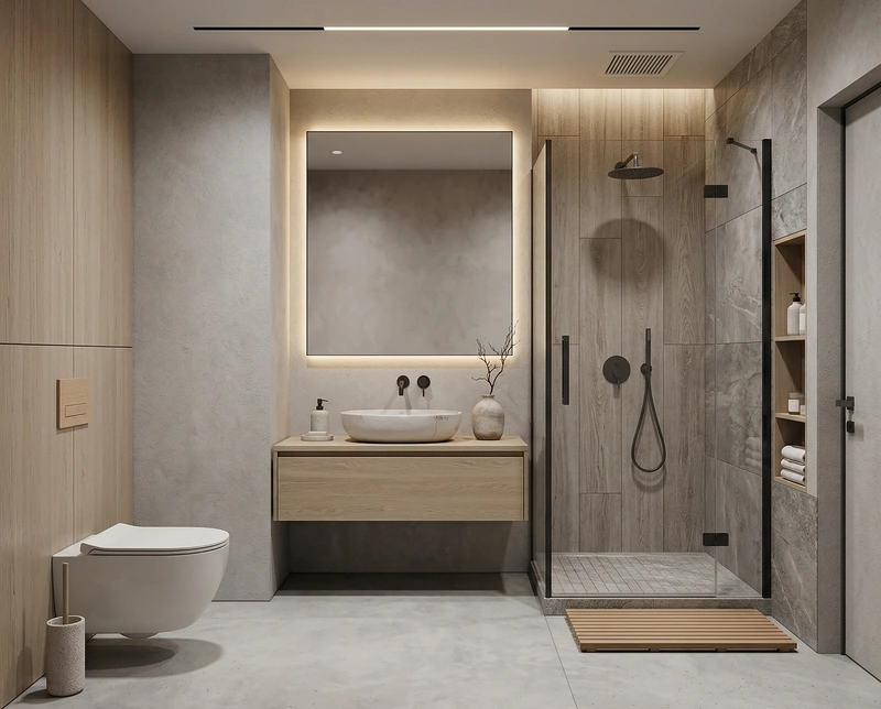 Создать дизайн ванной в стиле Japandi