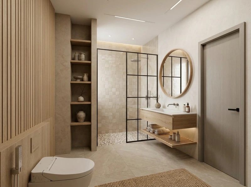 Гармоничное сочетание японской эстетики и скандинавской функциональности. Натуральное дерево, нейтральные тона и осознанный подход к каждому элементу интерьера.