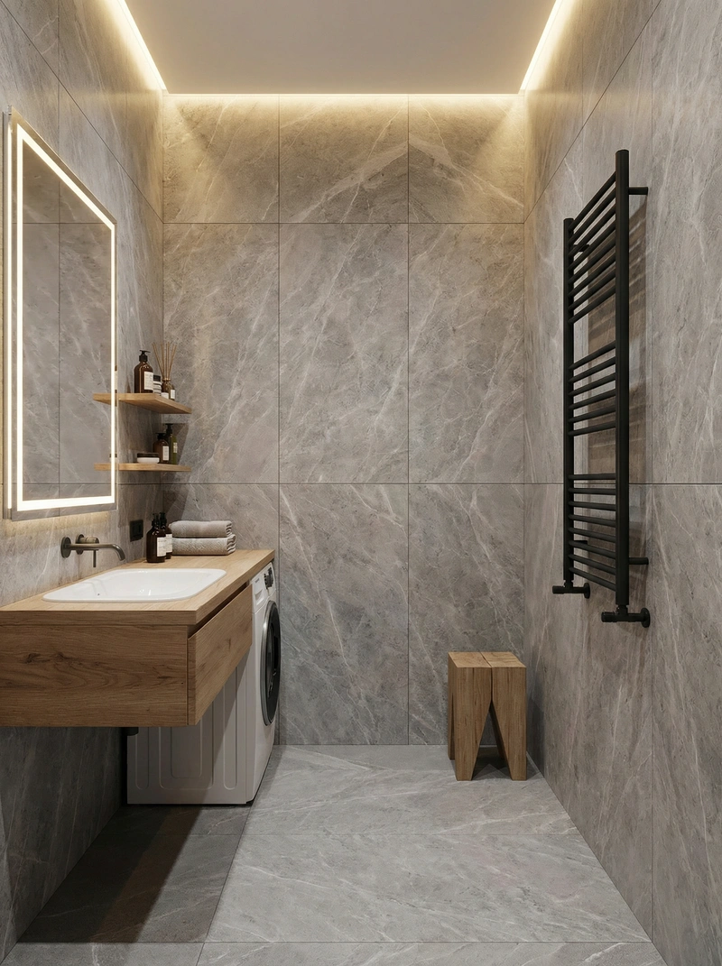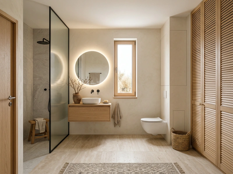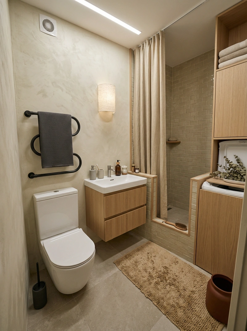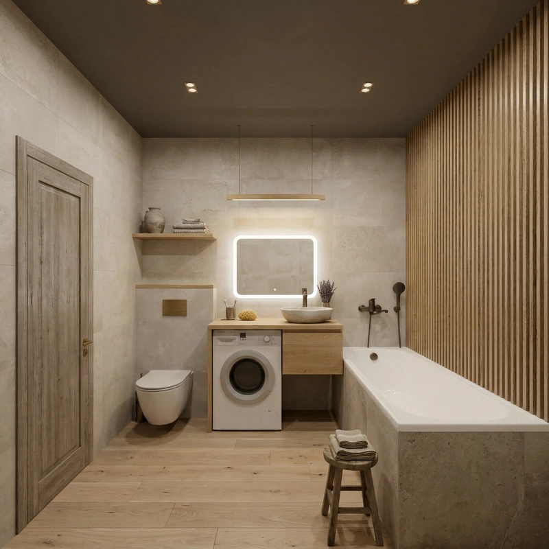 Дизайн ванной в стиле Japandi — фото интерьера от нейросети RoomGPT