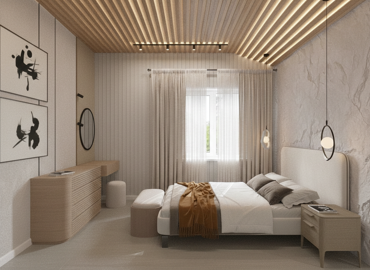 В этой подборке 232 примеров оформления спальни в стиле Japandi, созданных нейросетью RoomGPT. Каждое изображение сгенерировано на основе реального фото помещения.