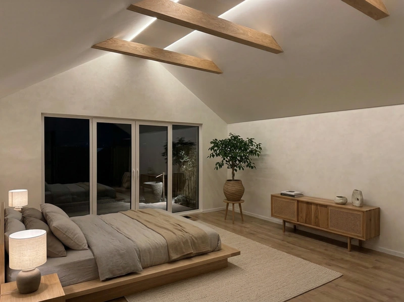Создать дизайн спальни в стиле Japandi