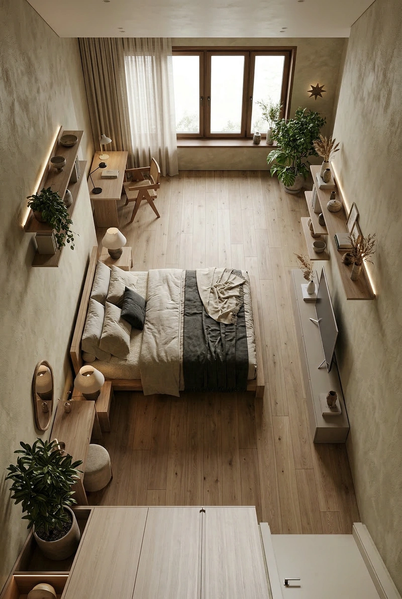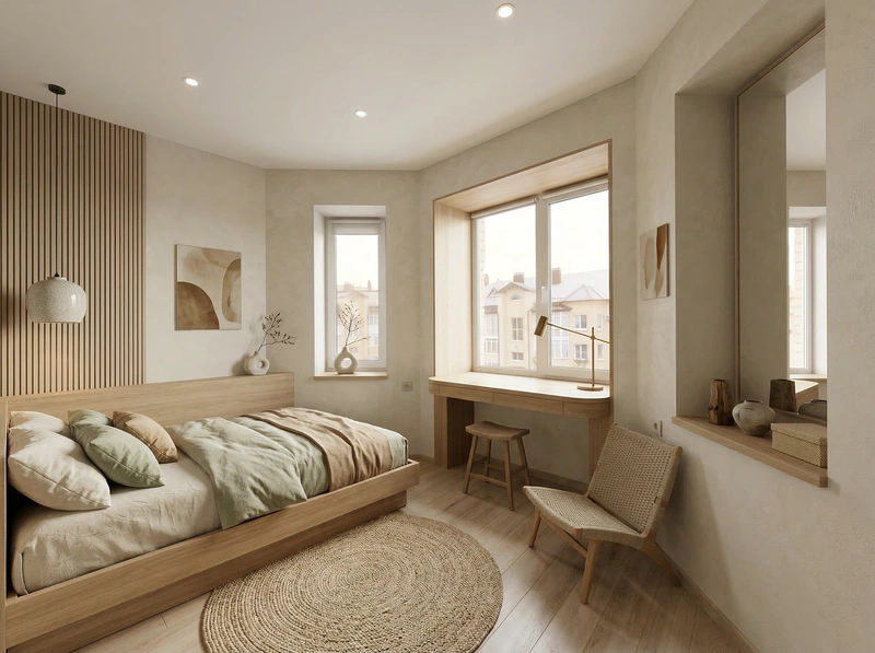 Создать дизайн спальни в стиле Japandi
