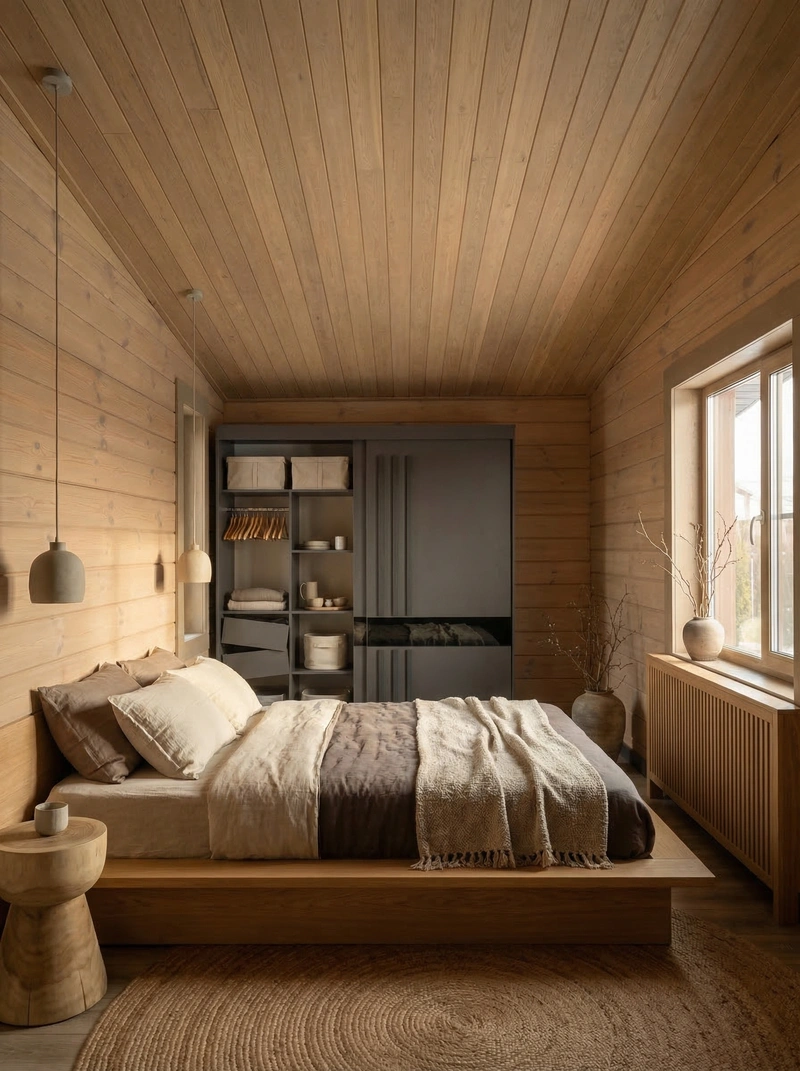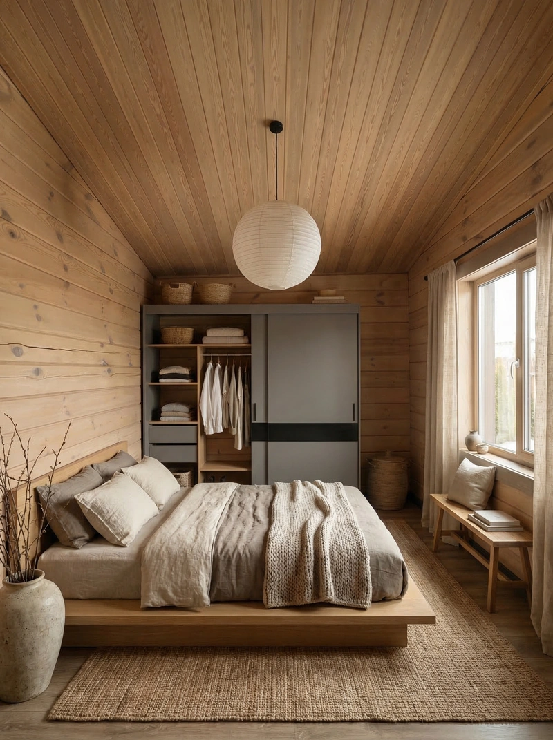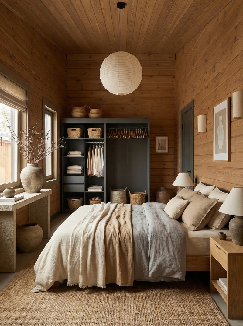 Дизайн спальни в стиле Japandi — фото интерьера от нейросети RoomGPT