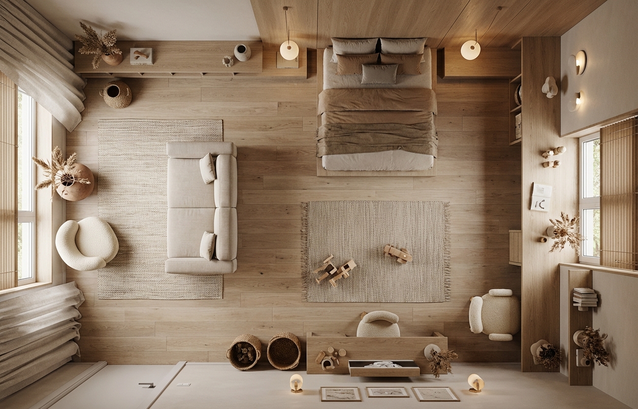 Гармоничное сочетание японской эстетики и скандинавской функциональности. Натуральное дерево, нейтральные тона и осознанный подход к каждому элементу интерьера.