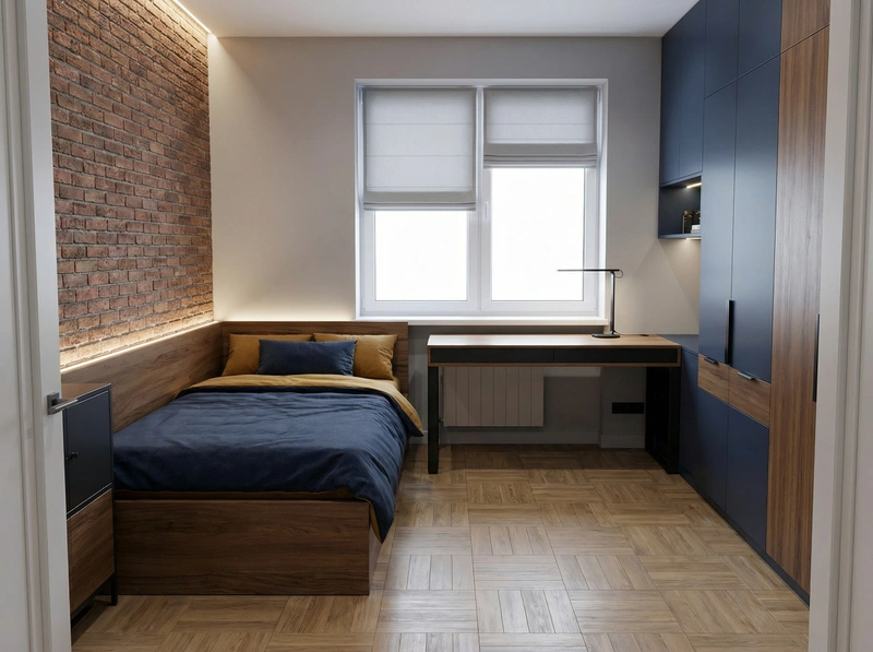 Индустриальный стиль с кирпичными стенами, открытыми коммуникациями и металлическими элементами. Лофт создаёт атмосферу творческого пространства с характером.