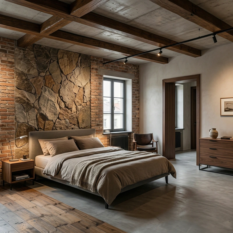 Дизайн спальни в стиле Лофт — фото интерьера от нейросети RoomGPT