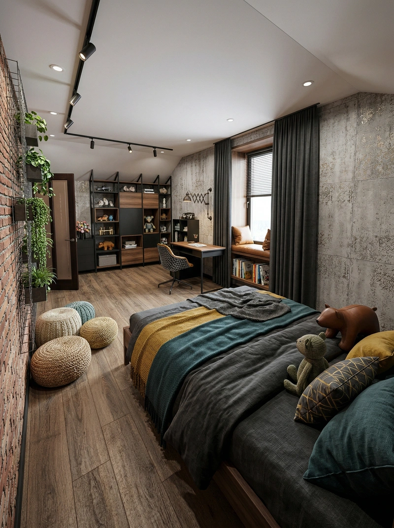 Дизайн детской в стиле Лофт — фото интерьера от нейросети RoomGPT