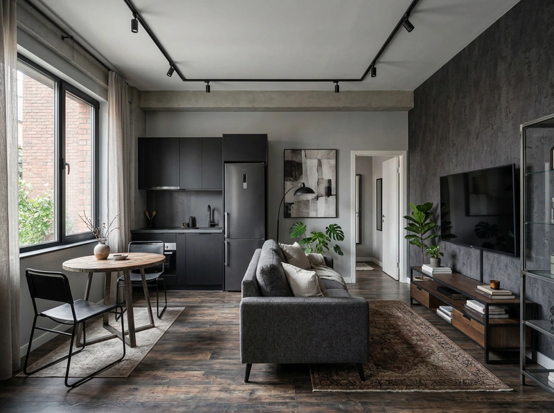 Индустриальный стиль с кирпичными стенами, открытыми коммуникациями и металлическими элементами. Лофт создаёт атмосферу творческого пространства с характером.