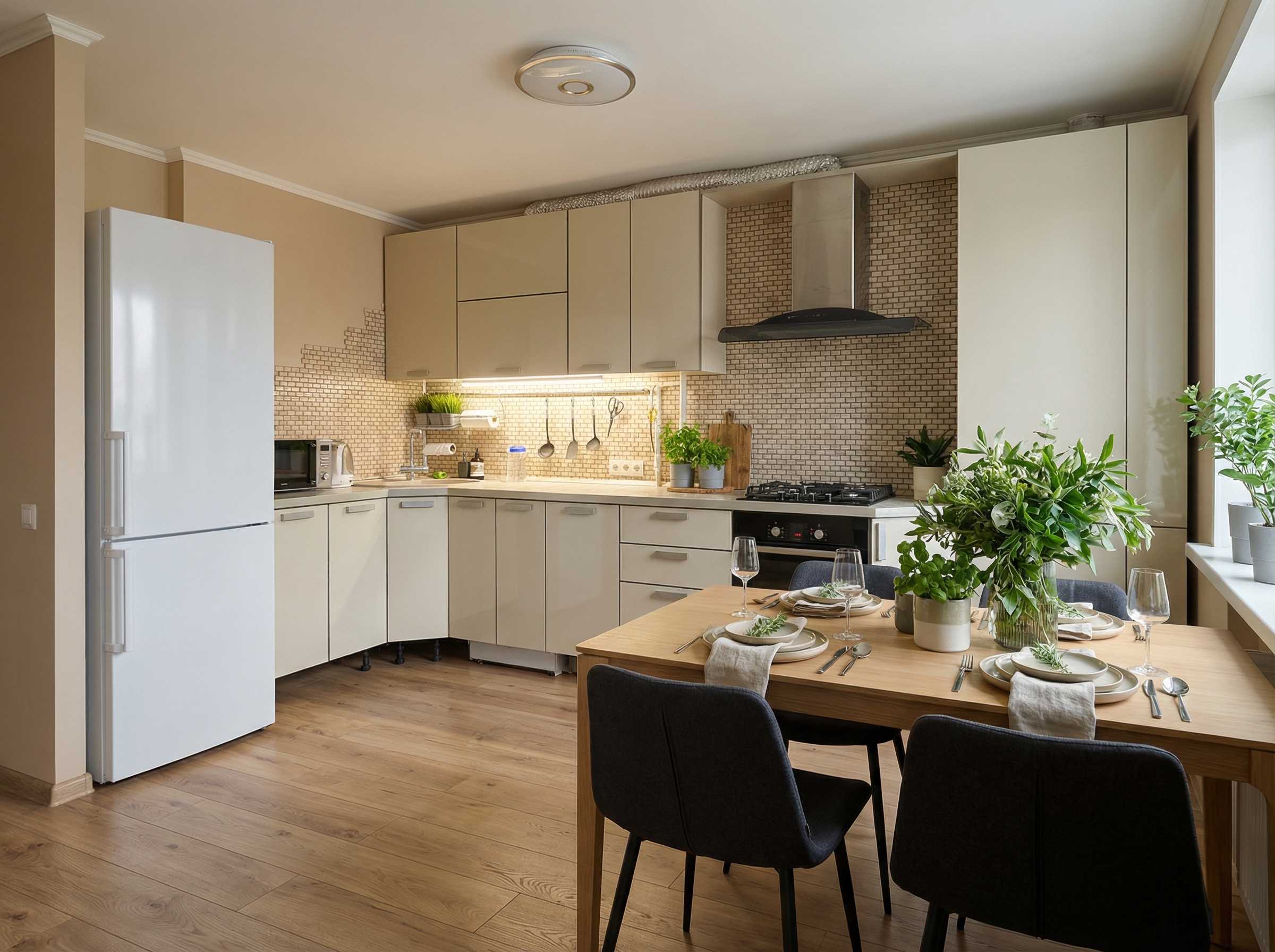 В этой подборке 635 примеров оформления кухни в стиле Минимализм, созданных нейросетью RoomGPT. Каждое изображение сгенерировано на основе реального фото помещения.