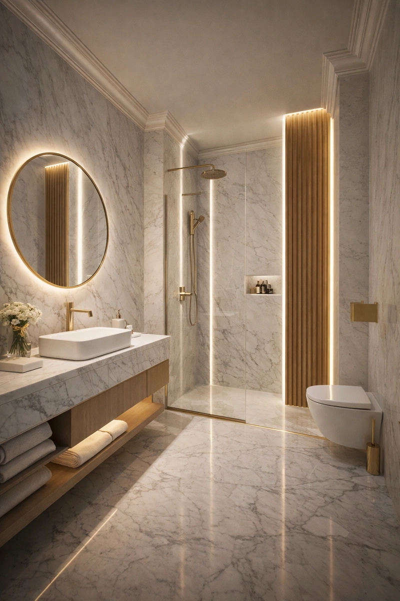 Дизайн ванной в стиле Неоклассика — фото интерьера от нейросети RoomGPT