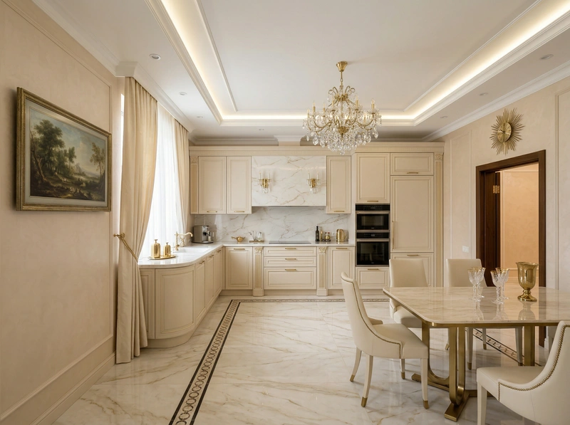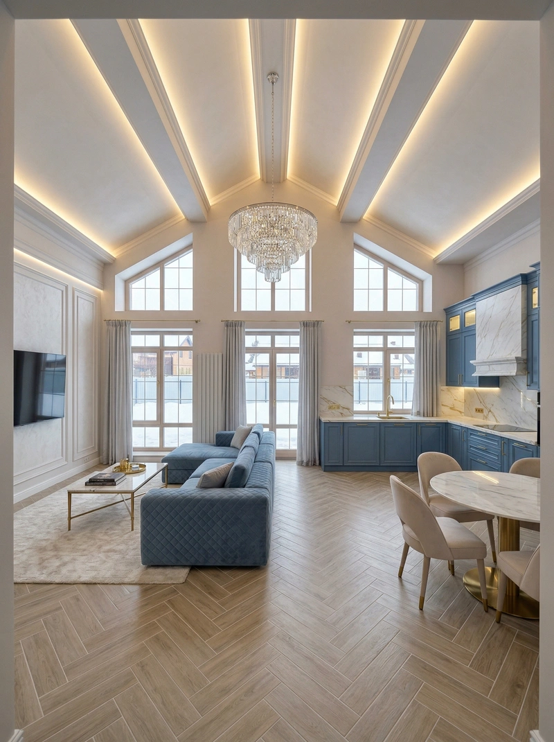 Современная интерпретация классики с изящными деталями, молдингами и благородной палитрой. Неоклассика привносит статус и утончённость в современное жильё.
