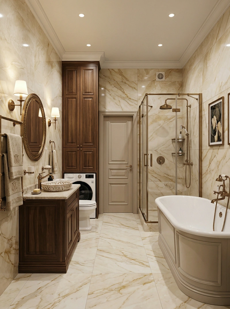 Дизайн ванной в стиле Классика — фото интерьера от нейросети RoomGPT
