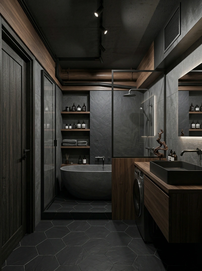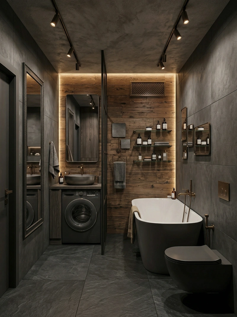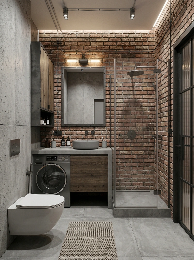 Дизайн ванной в стиле Лофт — фото интерьера от нейросети RoomGPT