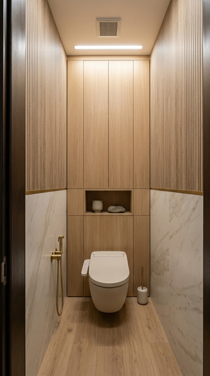 Дизайн ванной в стиле Japandi — фото интерьера от нейросети RoomGPT