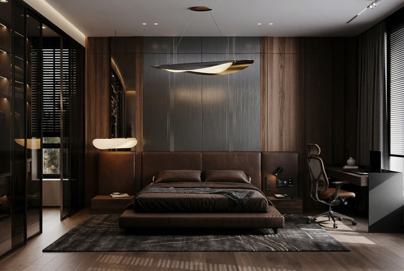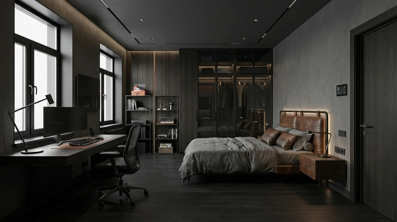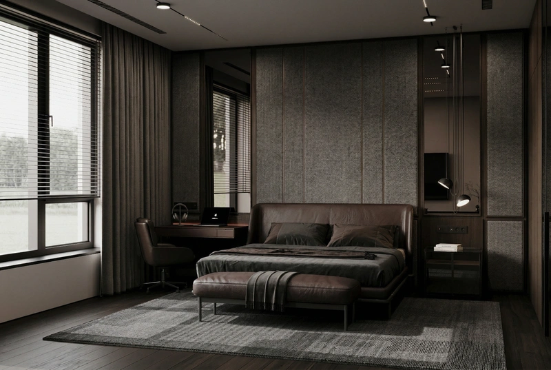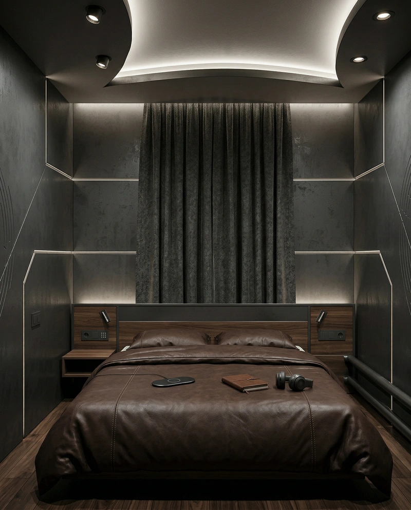Дизайн спальни в стиле Блэктэк — фото интерьера от нейросети RoomGPT