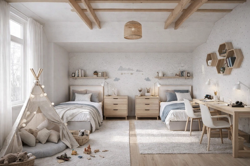 Дизайн детской в стиле Хюгге — фото интерьера от нейросети RoomGPT