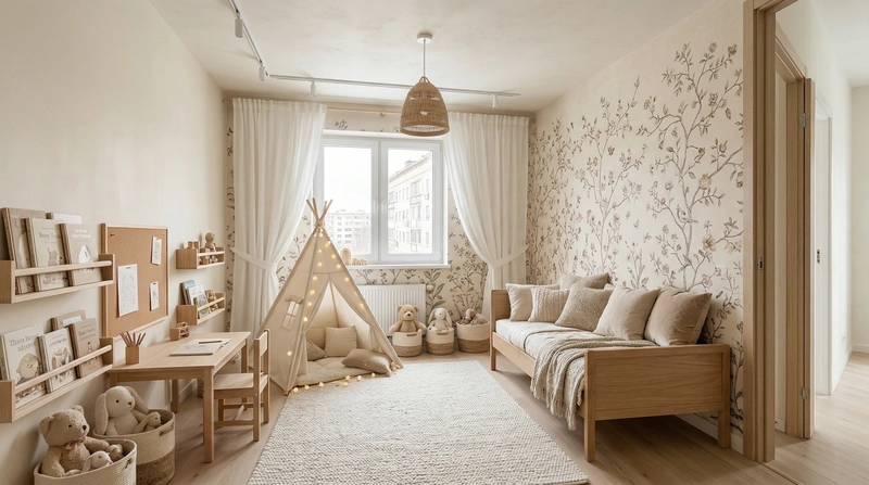 Дизайн детской в стиле Хюгге — фото интерьера от нейросети RoomGPT