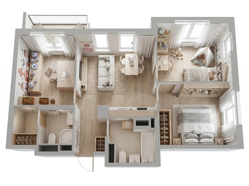 Нейросеть RoomGPT создает уникальные варианты дизайна детской в любом стиле. Загрузите фото вашего помещения, выберите стиль — и получите профессиональный рендер за 30 секунд.