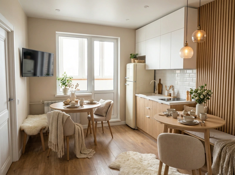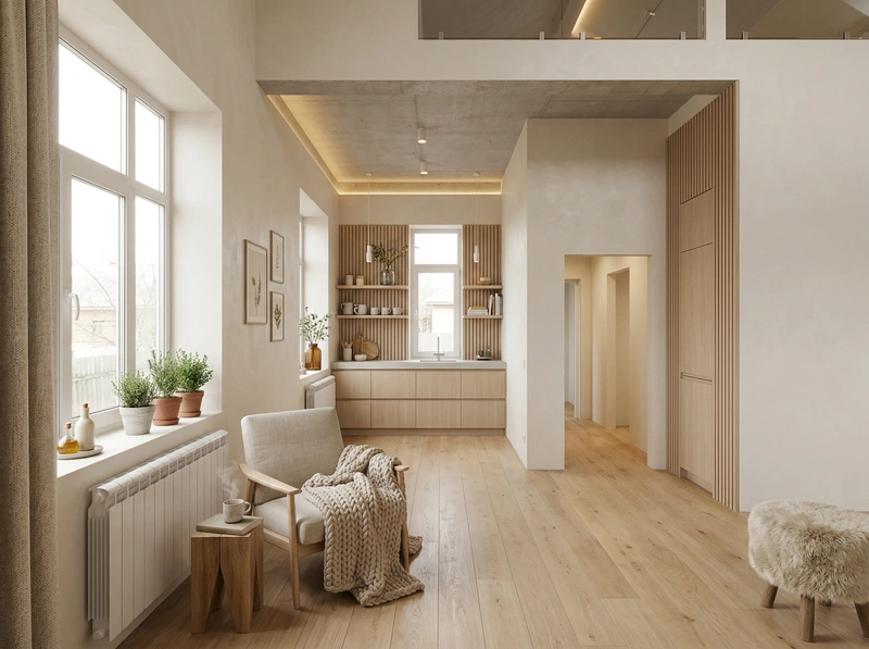Дизайн кухни в стиле Хюгге — фото интерьера от нейросети RoomGPT