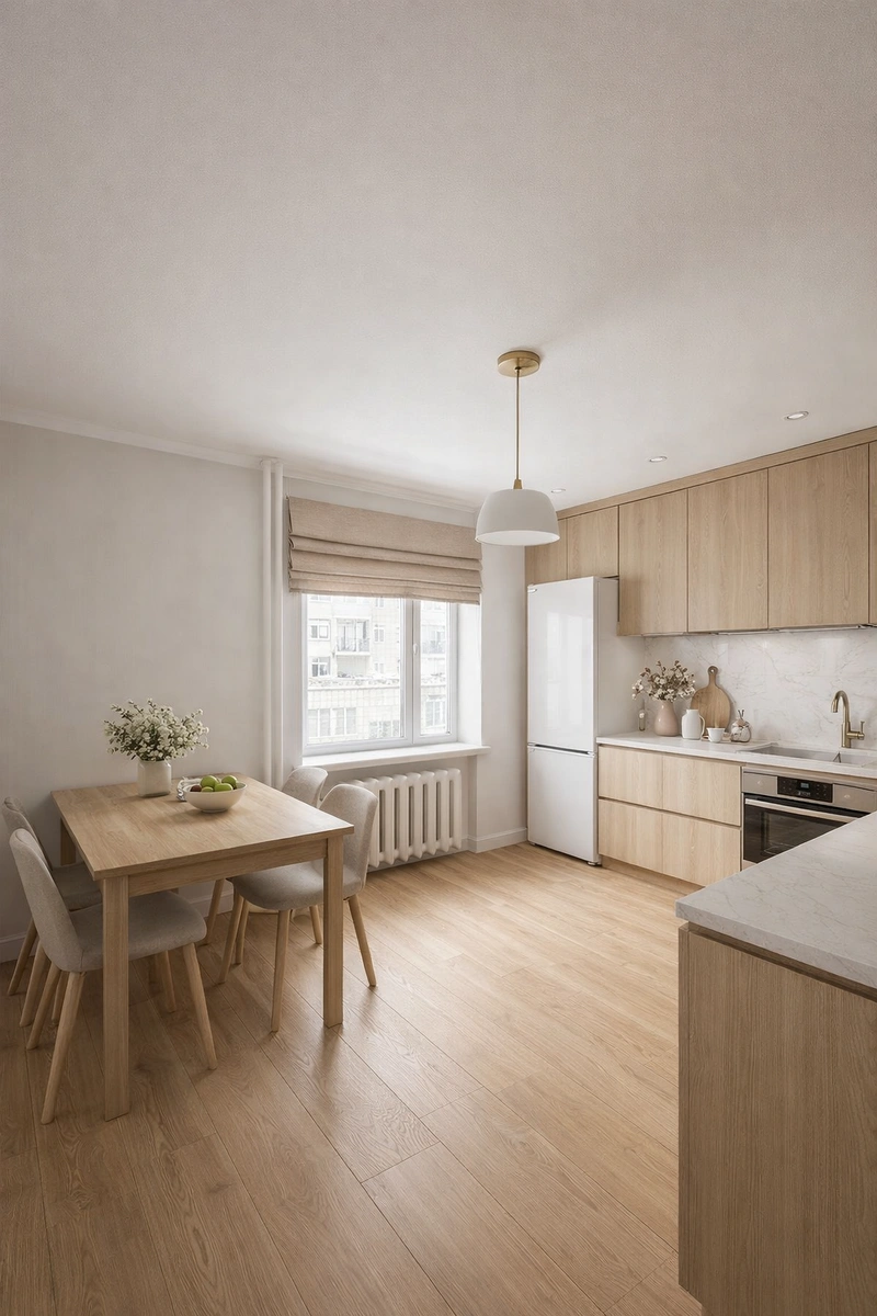 Дизайн кухни в стиле Сканди — фото интерьера от нейросети RoomGPT