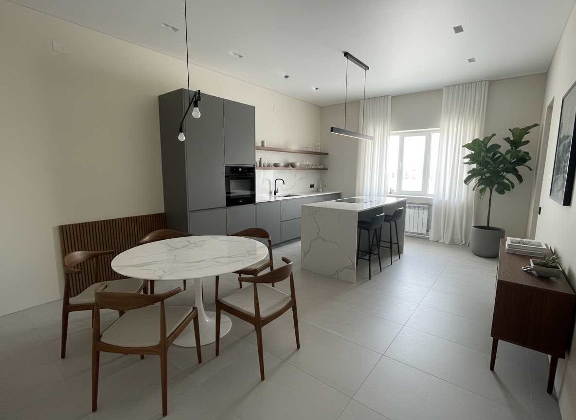 Нейросеть RoomGPT создает уникальные варианты дизайна кухни в любом стиле. Загрузите фото вашего помещения, выберите стиль — и получите профессиональный рендер за 30 секунд.