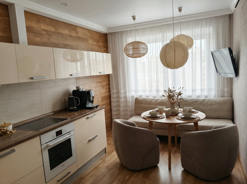Примеры дизайна кухни в разных стилях, созданные нейросетью RoomGPT