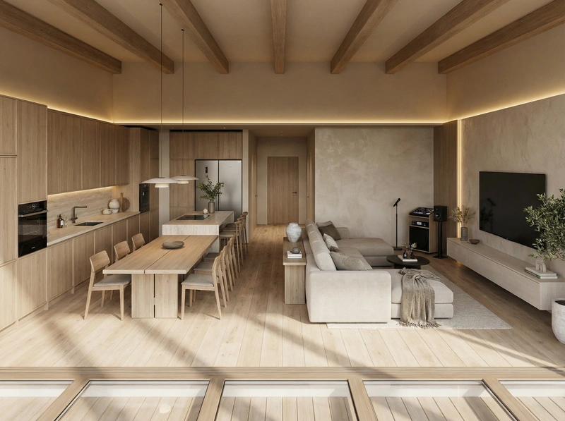 Дизайн кухни в стиле Japandi — фото интерьера от нейросети RoomGPT