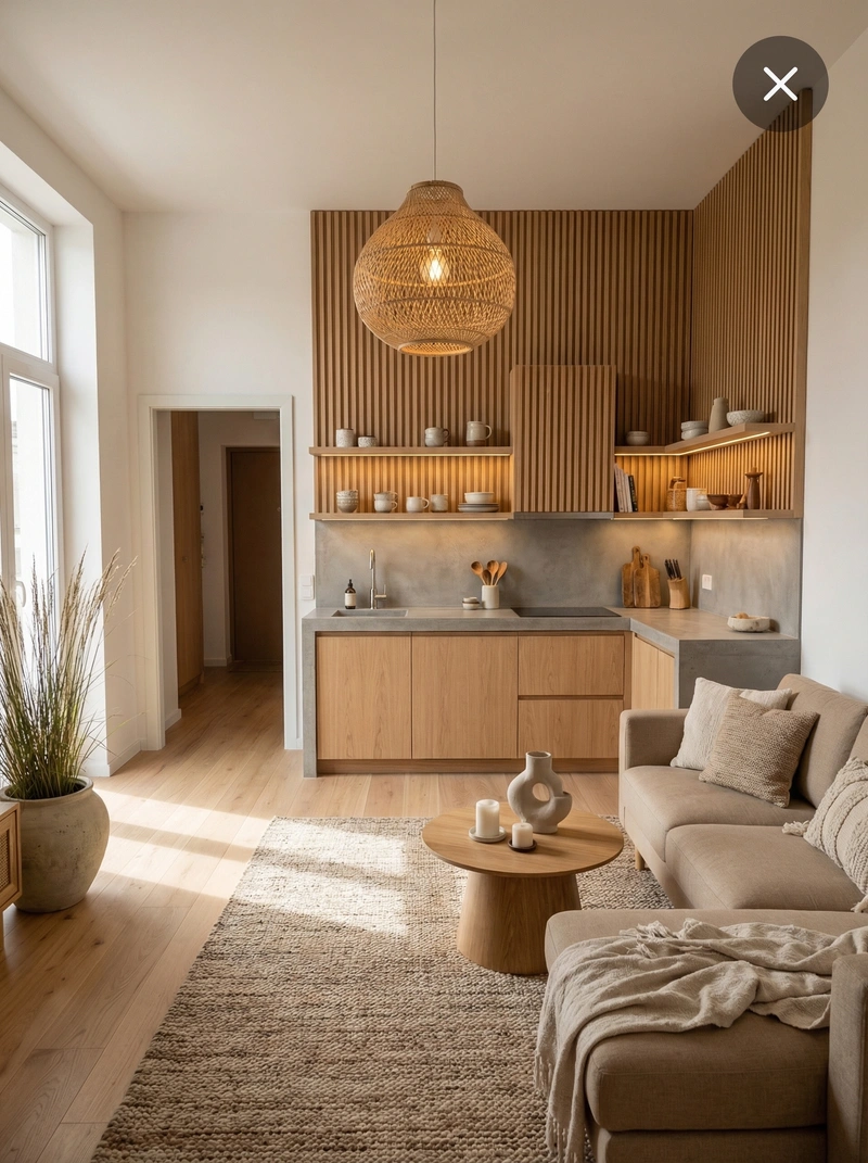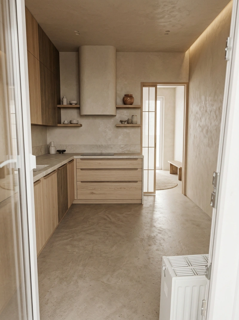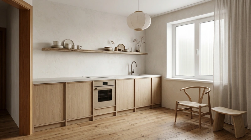 Дизайн кухни в стиле Japandi — фото интерьера от нейросети RoomGPT