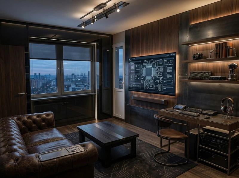 Дизайн гостиной в стиле Блэктэк — фото интерьера от нейросети RoomGPT